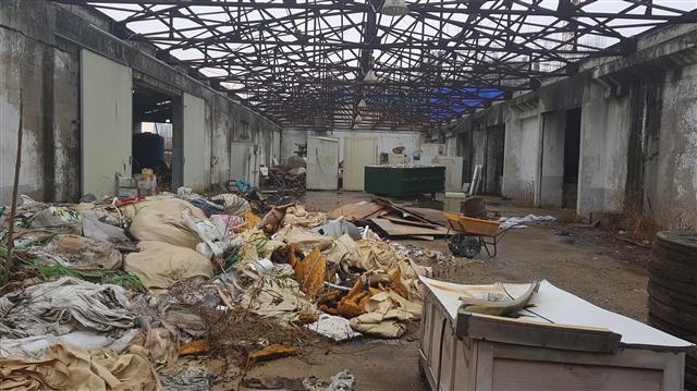 [흉물 전락한 익산국가산단 옛 보일콘 공장부지] 건물 내부 폐전선·유리 등 산더미…악취까지 진동