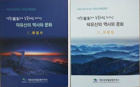 덕유산국립공원사무소는 2016년부터 미개발 인문자원을 발굴·보전하고 전문적으로 관리하기 위해 덕유산 역사문화 발굴사업으로 추진했다. <삼국사기> , <비변사등록> 등 다양한 문헌자료에서 덕유산에 관한 기록만 추렸고, 사료비판과 역사적인 검토를 거쳐 이번에 <덕유산의 역사와 문화> ‘Ⅰ. 해설서’와 ‘Ⅱ. 자료집’ 등 총 2권을 펴냈다. 덕유산의> 비변사등록> 삼국사기>