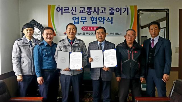 무주경찰서(서장 윤중섭)와 대한노인회 무주군지회(지회장 이광부)가 관내 어르신 교통사고 감소를 위해 한 자리에서 머리를 맞댔다.