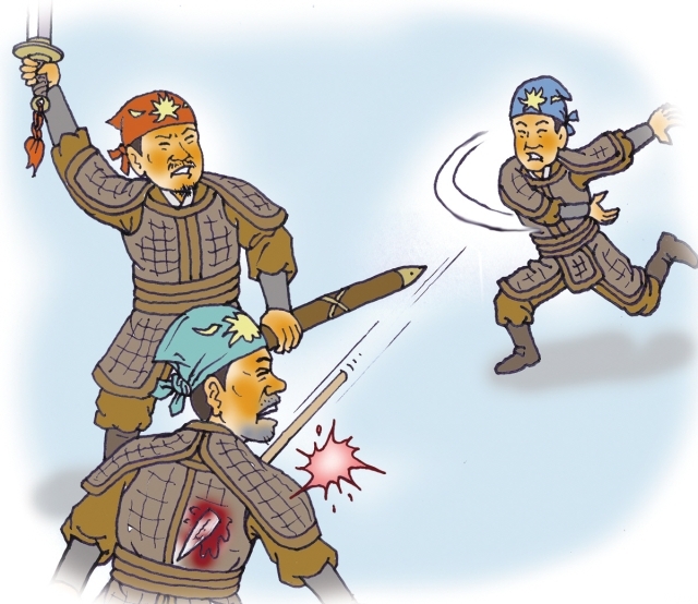 박기세의 비명을 신호로 삼은 것처럼 사방에서 살육이 일어났다. 한동안 북문 주변은 비명과 외침으로 뒤덮였다. 박기세의 가슴을 창으로 꿴 군사는 바로 계백이다. 기습을 당한 북문 수비군이 전멸을 당한 것과 맞춰서 안쪽 민가에서 불길이 일어났다. 화청의 제2대가 불을 지른 것이다.
