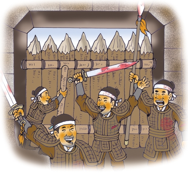 둘러선 무장들은 대답하지 못했다. 북문의 불길을 뚫고 온 수비군이 없었기 때문이다. 백제군이 안에서 친 것을 모른다.