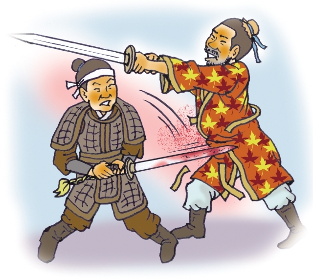 김품석이 맞받아 소리치면서 칼을 내질렀지만 이미 기세가 꺾였고 살기가 떨어졌으며 검법 또한 미숙했다. 계백이 김품석의 칼을 겨드랑이 사이로 보내면서 치켜든 칼을 후려쳤다. 맹렬한 살기, 노도와 같은 기세, 빈틈없는 검술이다.