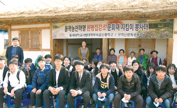 (사)김제동학농민혁명기념사업회(이사장 최규섭) 주관으로 김제원평집강소에서 열린 이날 발대식에는 동국대 사범대학 부속 금산중학교(교장 조영석) 학생 및 모악산문화공동체(대표 최고원), 김제시강소농1번지(회장 조정천) 자원봉사자 등 100여명이 참석했다.