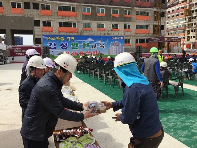 전북개발공사 고재찬 사장은 현장근로자들에게 간식을 직접 나눠주며 “현장근로자의 높은 안전의식으로 무재해 달성중”이라며 “안전한 일터, 건강한 근로자를 위해 최선을 다할 것”이라고 말했다.