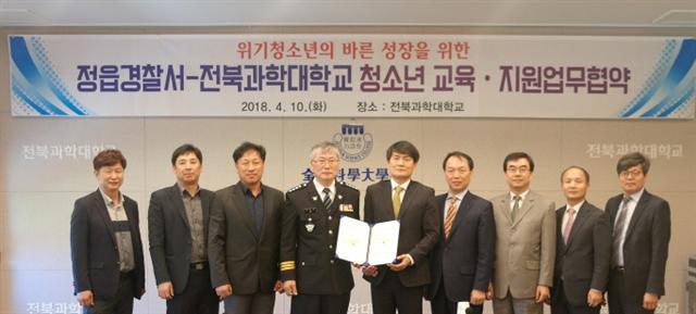 전북과학대학교(총장 황인창)와 정읍경찰서(서장 한도연)는 지난 10일 전북과학대학교에서 ‘청소년 교육 및 지원 업무 협약’을 체결했다.