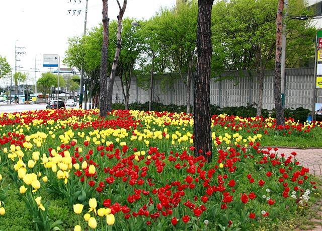 시 산림녹지과에 따르면 화단(15개소)과 소공원(17개소), 꽃박스(229개)에 다년생인 튤립 4만본과 꽃잔디 5만본, 팬지 10만본을 심었다.
