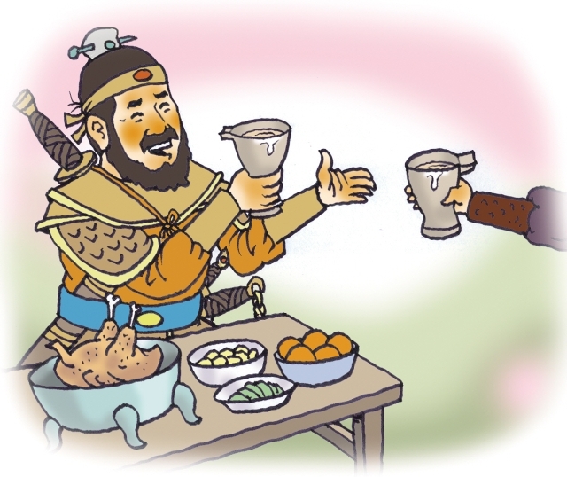 그때 무관들이 다가와 연개소문과 계백 앞에 국그릇만한 술잔이 놓인 작은 상을 놓고 갔다. 술잔에는 술이 가득 담겨 있다.