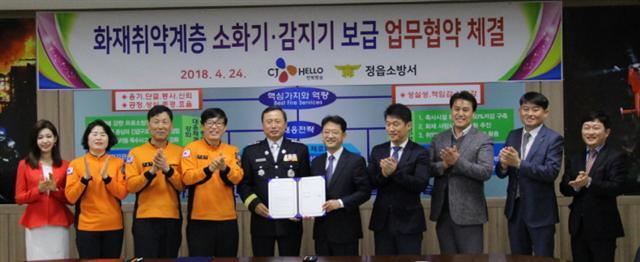정읍소방서(서장 김원술)와 CJ헬로비전 전북방송(대표 이재현)은 지난 24일 소방서에서 주택용 소방시설 설치 및 홍보를 위한 업무협약을 체결했다. 양측에 따르면 관내 화재취약계층의 주택용 소방시설 설치촉진 및 홍보를 통한 시민의 초기화재 대응능력을 향상하고 안전문화 확립을 위해 마련됐다.