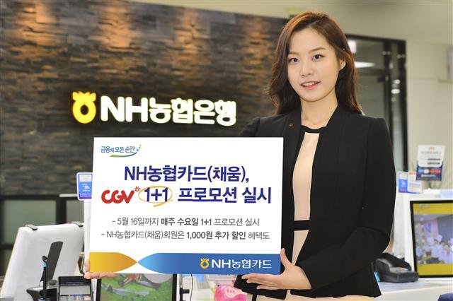 NH농협카드(채움) 고객은 행사기간 중 매주 수요일 전국 150여개 CGV 극장에서 2D 일반영화 현장(매표소) 결제 시 1+1 혜택을 받을 수 있다. 수요일 당일 영화뿐 아니라 다른 요일에 상영하는 영화도 수요일에 현장을 방문해 미리 결제하면 1+1 혜택을 적용 받는다.