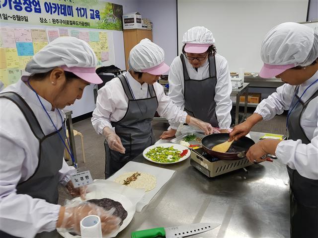 완주군 농업기술센터에 따르면 지난 2012년부터 지역주민을 대상으로 고산과 구이로컬푸드 가공센터에서 농식품 가공창업 아카데미 교육에 나서 지난해까지 10기에 걸쳐 450명의 수료생을 배출했다. 지난달부터는 구이 로컬푸드 가공센터에서 지역민 40명을 대상으로 반찬, 습식, 건식, 간식, 소스, 발효 등 6개 과정에 가공역량 향상 프로그램 교육을 실시하고 있다.