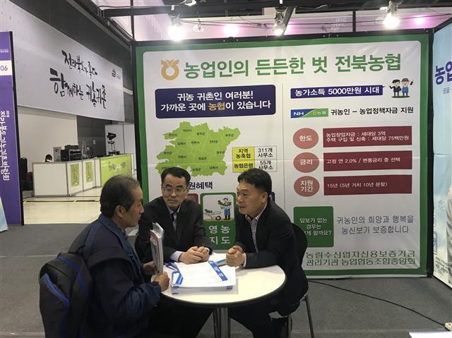 전북농협(본부장 유재도)은 지난 11일부터 13일까지 서울 서초구 양재동 aT센터에서 열린 ‘2018 전라북도 귀농귀촌 박람회’에 참여했다고 14일 밝혔다. 이번 박람회에서 농협은 새롭게 제2의 인생을 열고자 하는 수도권 귀농·귀촌 수요자를 위하여 5개 홍보부스를 설치·운영해 유관기관으로서의 다양한 활동을 전개했다.