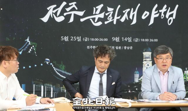 ▲ 15일 전주시청 브리핑룸에서 전주시와 전주문화재 야행 추진단이 한옥마을 경기전과 풍남문 일원에서 오는 25일 개막야행과 9월14일 폐막야행 등 올해 2차례에 걸쳐‘2018 전주문화재 야행’을 진행한다고 밝히고 있다. 조현욱 기자