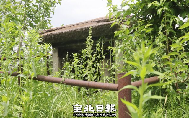 17일 오전 완주군 삼례읍 후정리 금반마을. 우뚝 솟은 흙더미 위에 65㎝ 정도 높이의 불상이 보일 듯 말듯 자리해 있다. 텃밭 옆에 놓인 불상은 성인 남성보다 높게 자란 잡초 더미에 갇혀 있었다. 머리와 몸통이 구분됐지만, 뚜렷한 생김새가 없어 눈사람처럼 보였다. 불상의 앉는 자리인 대좌와 지붕은 콘크리트 소재였으며 비바람을 막는 듯했다. 철로 된 울타리도 둘러쳐져 있었다.