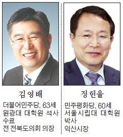 익산시장 선거는 민주당 공천을 받은 김영배 전 전북도의회 의장과 평화당의 정 후보 2자 대결이다. 정 후보는 인물론을, 김 후보는 여당 소속 시장의 정치력을 내세우고 있다.