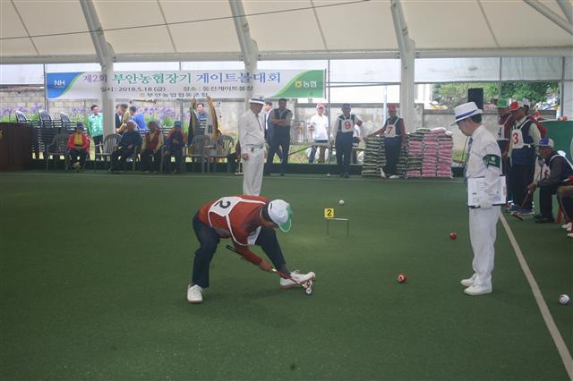 ▲ 지난 18일 부안군 동진면 동진게이트볼장에서 열린 제2회 부안농협장기 게이트볼대회 모습.
