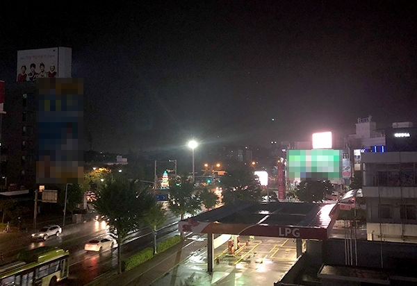 이 건물 옥상에 올라가자 쇠파이프로 연결된 조립식 장막이 있었다. 파이프에는 조명 수십 개가 선거 현수막을 향해 달려 있었다.