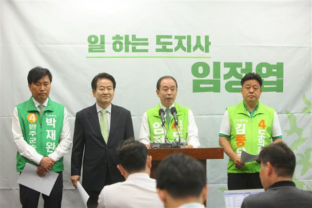 민주평화당 임정엽 도지사 후보와 이현웅 전주시장·박재완 완주군수 후보는 29일 “전북에서 생산한 쌀을 현대자동차 전주공장의 트럭에 실어 북한에 보내자”고 제안했다.