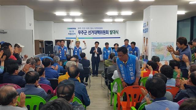 더불어민주당 무주군 선거대책위원회에 따르면 지난 29일 무주읍 소재 백경태 무주군수 후보 선거사무실에서 지역구위원장인 안호형 국회의원을 비롯해 무주지역의 선거 출마후보들과 당원, 지지자 등 300여 명이 함께한 가운데 발대식이 진행됐다.