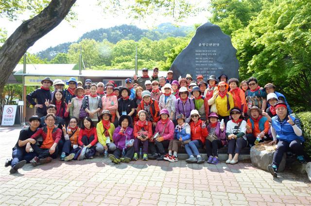 ▲ 지난해 순창군 힐링프로그램에 참가한 풀무원 직원들이 기념촬영을 하고 있는 모습.
