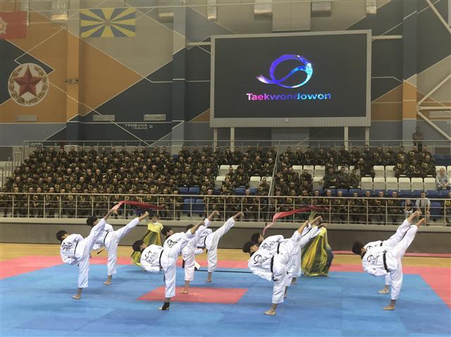 지난 11일(벨라루스 현지시간) 벨라루스 민스크에 위치한 우루치예(스포츠궁전)에서는 재단 이상욱 이사장과 김용호 주벨라루스 대사, 뱌체슬라프 두르노프 벨라루스 체육부 제1차관을 비롯해 3000여명의 현지 관객이 참석한 가운데 태권도원 시범단 및 벨라루스 어린이 태권도 시범단의 시범공연이 펼쳐졌다.