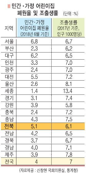 도내 민간·가정 어린이집이 무너지고 있다. 전북지역의 출생률 하락이 어린이집 폐원을 속출시키고 있다.