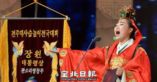 시상을 위해 무대에 오른 판소리 명창부 장원 이지숙(33) 씨는 결과 발표 전부터 눈물을 흘렸다. 하염없이 눈물을 흘리던 그는 장원에 이름이 호명되자 머릿속이 새하얘진 듯했다. 기념 무대 준비를 위해 내려가는 출구도 찾지 못할 만큼 감격스러워했다. ‘전주대사습 놀이’ 세 번째 도전 만에 대통령상을 안겨준 심청가의 ‘주과포혜’ 대목을 다시 들려준 이 씨는 소리가 끝난 후 객석을 향해 큰 절을 했다.