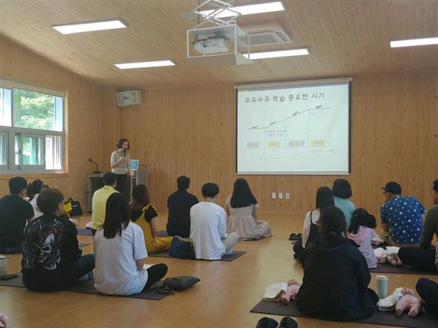 ▲ 남원 백두대간 부부태교교실에 참가한 예비부모들이 모유수유 교육을 받고 있다.