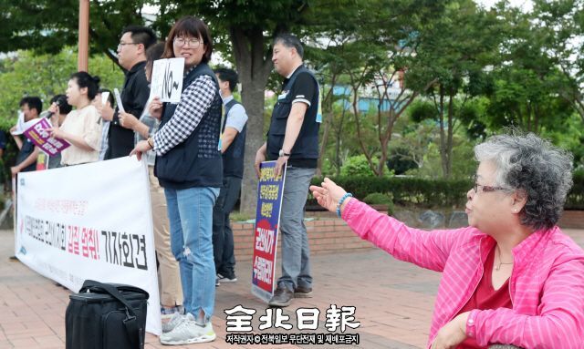 전북 도내 시민사회단체로 구성된 ‘전북직장갑질 119’는 26일 전북지방경찰청 앞에서 기자회견을 열고 “시각장애인 연합회 군산시지회가 시각장애인 이동지원센터와 주간보호센터를 운영하는 과정에서 부당한 갑질로 노동자들의 권리를 침해해 왔다”고 주장했다.