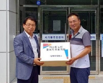 시기동주민자치위원으로 활동하는 박 대표는 형편이 넉넉하지 못한 65세 이상 저소득층 어르신들에게 전달해 달라며 돋보기를 전달했다.