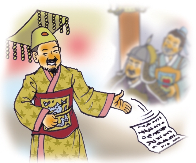 편지를 받은 의자가 훑어 보고 나서 청바닥에 던졌다. 의자의 시선이 계백에게 옮겨졌다.
