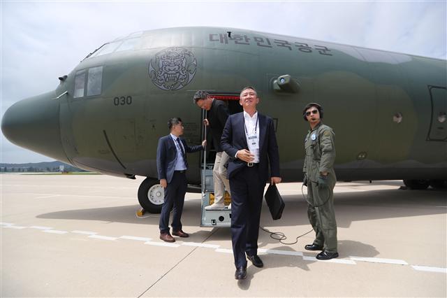 ▲ 남북 통일농구 대표단의 허재 남자 대표팀 감독 등이 3일 북한 평양 순안공항에 도착해 수송기에서 내리고 있다. 연합뉴스