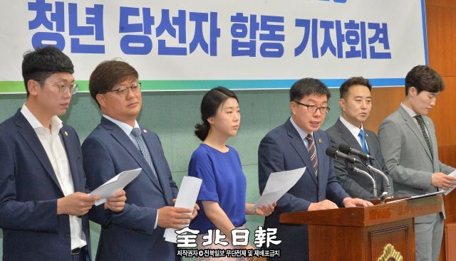 강용구 전북도의원과 김윤권·송영진·서난이·백영규·한승진 전주시의원은 4일 전북도의회에서 기자회견을 열고, “청년 당사자로서 청년 정책 실천의지를 굳게 다지고, 지방권력 감시자로서 역할하겠다”고 약속했다. 이번 선거에서 민주당 공천을 받은 청년(만45세 이하)후보 25명이 출마해 20명이 당선했다.