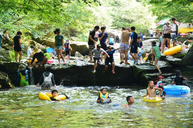 순창 강천산이 찜통더위 탈출 피서지로 각광받으며 전국에서 관광객이 몰리고 있다.