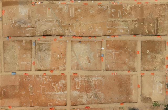 조사 지역 중앙에 자리한 석축은 길이가 동-서로 약 38m, 잔존 높이는 최대 42㎝로 약 4단 정도가 남아 있다. 석축의 안쪽으로 정면 5칸, 옆면 1칸의 대형 건물지를 지었다. 건물지와 석축 주변에는 도자기 제작을 위한 부속시설로 보이는 유구(遺構·건물의 자취)들이 확인됐으며, 건물지의 서남쪽에 가까운 유구 내에서는 ‘관(官)’자명 기와가 출토됐다.