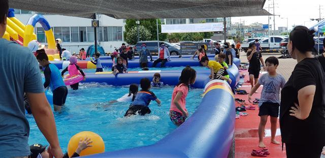 ▲ 남원시 이마트 야외주차장에 설치된 물놀이장.