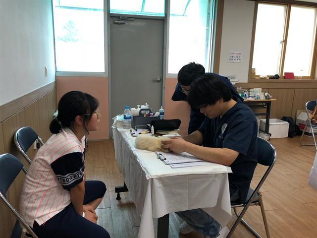 의료봉사는 내과, 재활의학과, 한의과(침 치료 및 약처방), 치과(치석제거, 충치치료, 틀니교정), 약과(영양제, 상비약), 간호과(혈액검사, 주사), 수의과 7개과 해당 전문의가 진료를 하며, 검사로는 X선검사, 혈액검사, 초음파검사, 심전도검사, 치과 스케일링 등을 비롯해, 허약노인을 위해 수액 치료도 병행 실시하고 있다.