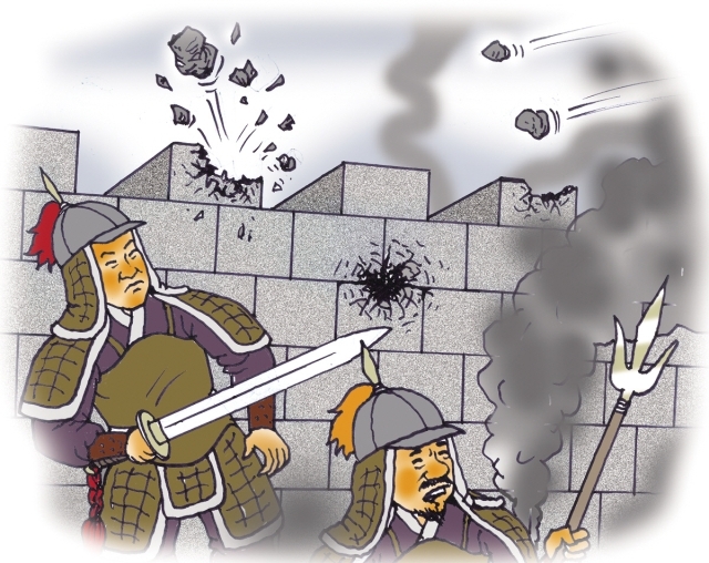 “당군이 부서지기 쉬운 바위를 던지는군.”