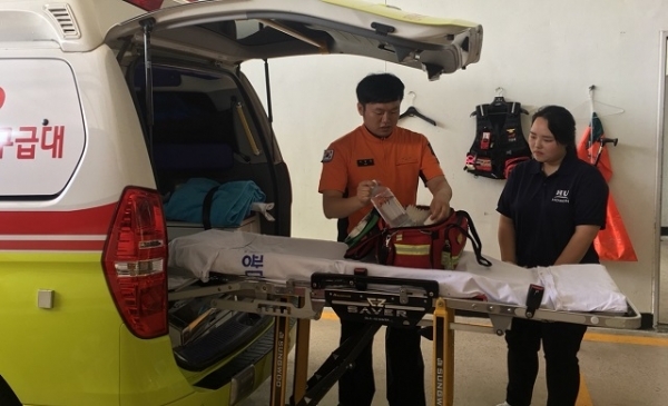 주요 실습내용으로는 △각종 구급출동 시 구급차 동승실습 △응급환자 이송 및 구조법 △심정지 및 중증응급환자 처치법 △각종 구급장비 사용 및 운영법 등이다.