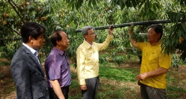 이날 유재도 본부장은 송혁 무주군지부장, 곽동열 무주농협 조합장, 이영철 무주반딧불조합공동사업법인 대표이사 등과 함께 수확을 앞둔 과수재배 농가를 찾아 철저한 태풍대응체계를 갖출 것을 주문했다.