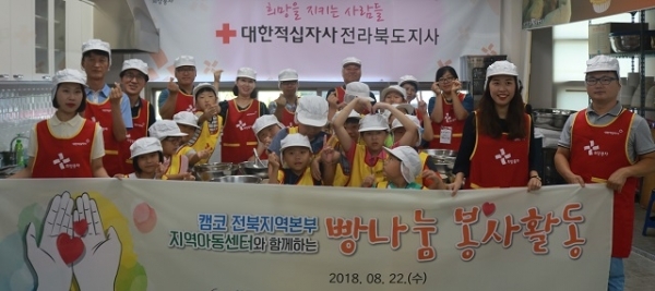 캠코(한국자산관리공사) 전북지역본부(본부장 강희종)는 22일 대한적십자사 전북지사에서 따숨지역아동센터 어린이들과 함께 ‘사랑의 빵 나눔’ 활동을 진행했다.
