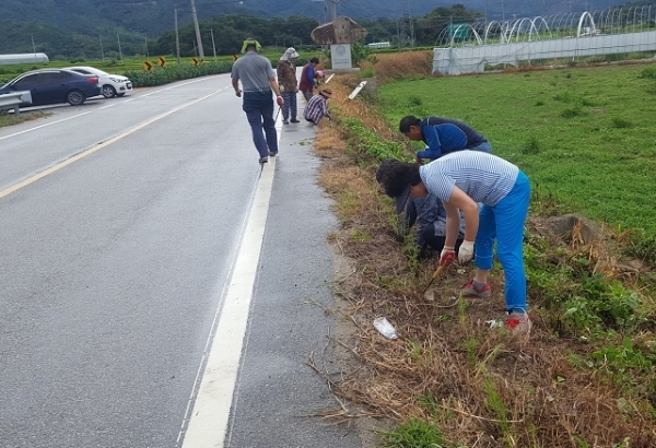 마을 청년들로 구성된 회원 100여명은 이날 오수천 제방과 국도 13호선을 대상으로 꽃길을 조성하고 주변 잡초제거 등으로 구슬땀을 흘렸다.