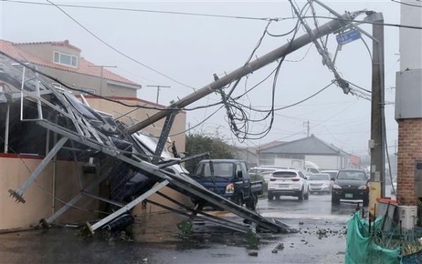 한국전력 제주지역본부에 따르면 전날부터 이날 오후 3시까지 도내 총 1만3천4가구가 강한 비바람 속에 정전됐다. 이 가운데 7천759가구는 복구가 완료된 상태고,5천245가구는 현재 복구작업 중이다.