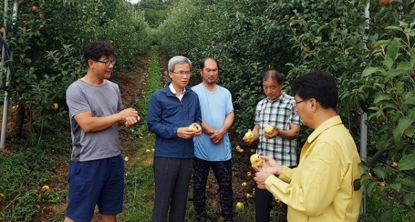 다만 이번 태풍은 북상하는 동안 강도가 크게 약화돼 당초 예상보다 적은 피해가 발행했다. 그러나 한 달 이상 지속된 폭염에 따른 일소피해에 낙과피해까지 겹친 사과재배 농가의 애로사항은 가중됐다.