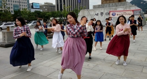 ‘2018 군산시간여행축제’ 개막을 앞두고 30여 명의 초등학생으로 구성된 ‘시간여행축제 플래시몹 서포터즈’가 서울의 주요 관광지에서 홍보 활동에 나서 눈길을 끌고 있다.