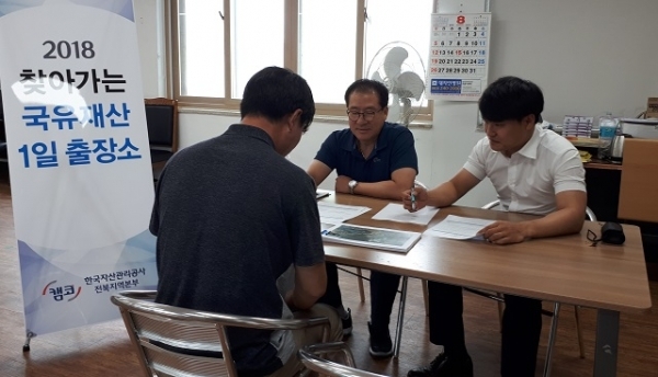 이번 1일 출장소에서는 △국유재산 매입 및 대부 계약 접수 △기초생활수급자 등 취약계층에 대한 국유재산 이용 우대제도 등 안내 △무단점유자에 대한 자진신고 접수 등과 함께 국유재산 관련 현장 민원상담을 함께 진행했다.