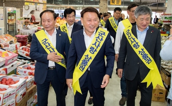 군산공설시장에서 열린 이날 행사에는 강임준 군산시장을 비롯한 김경구 군산시의회 의장, 김동수 군산상공회의소 회장, 한국노총 군산시지부 고진곤 의장, NH 농협 군산시지부 김규창 지부장, 시의원, 상인회 회장 및 금융기관장, 각 협회장, 시민 등 300여 명이 참석했다.