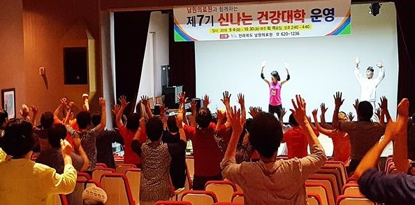 건강대학은 남원경찰서 라준채 팀장의 금융사기예방법, 전문 의료진들의 의학강좌, 웃음치료, 운동교실 등 다채로운 프로그램으로 구성됐다.