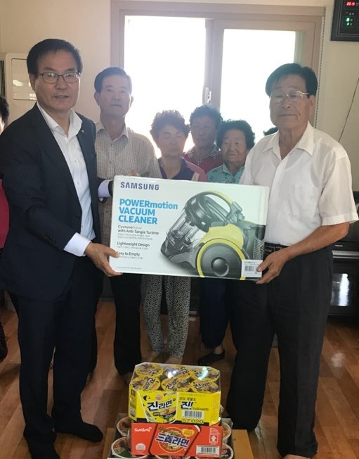 농협 부안군지부(지부장 배인태)는 지난 10일 추석명절을 앞두고 사회 취약계층에 대한 사회적 관심도 제고를 위하여 주산면 소산마을 마을회관을 방문하고 청소기, 사과, 배, 라면 등을 전달하는 행사를 진행했다.