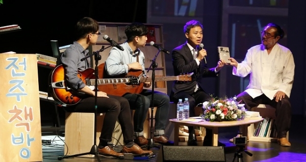 시와 전주시민들이 함께 만든 이번 독서대전 첫 날에는 주제 강연과 의전행사를 모두 생략하고 무대 위에 ‘전주책방’ 연극무대로 재현된 개막식이 열렸다.