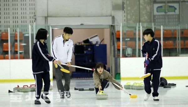 지난 2006년 전북도청 소속 국가대표로 장춘 동계아시안게임에서 컬링 금메달을 딴 김지숙 코치는 이날 중등부 선수에게 “몸이 한쪽으로 휜다. 중심을 잡아야 한다”는 말을 반복했다. 그는 “이 친구가 서툴기도 하지만, 바닥 자체가 기울어서 내가 어디로 가는지 모르는 게 더 안타깝다”고 탄식했다.